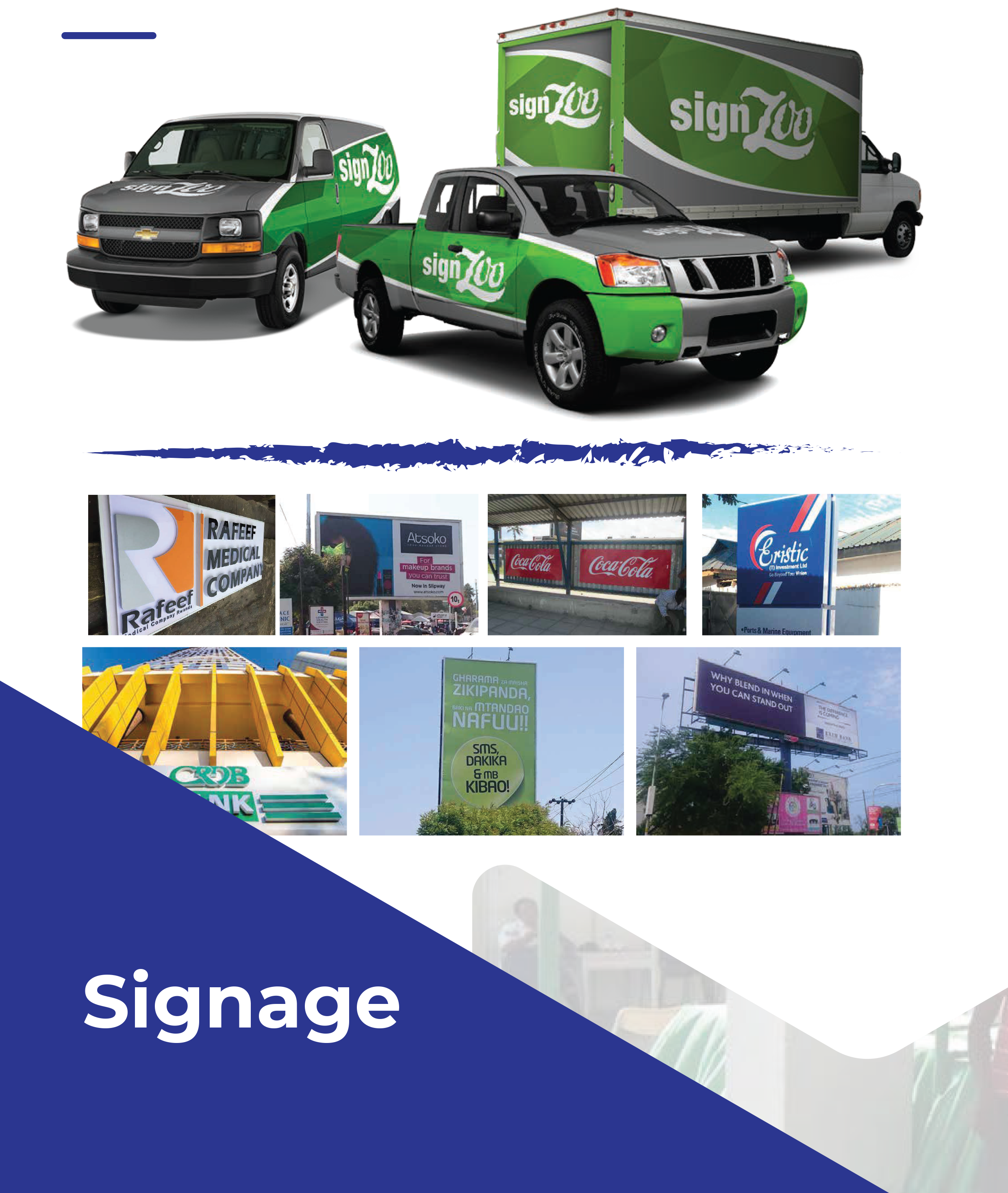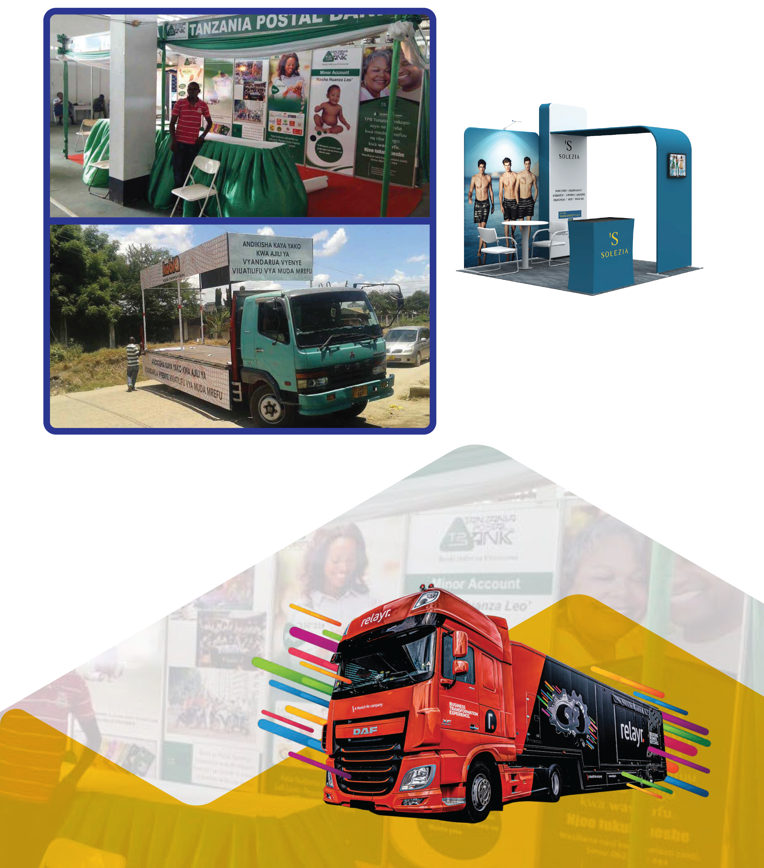 We are branding and printing company in Tanzania. We provide the best creative, innovative and customized marketing solutions for brands, business and organizations looking at stand out in current complex markets and achieve sustainable growth. We have extensive experience in brand designs, large, format printing, digital & offset printing, screen printing, embroidery, office & vehicle branding.